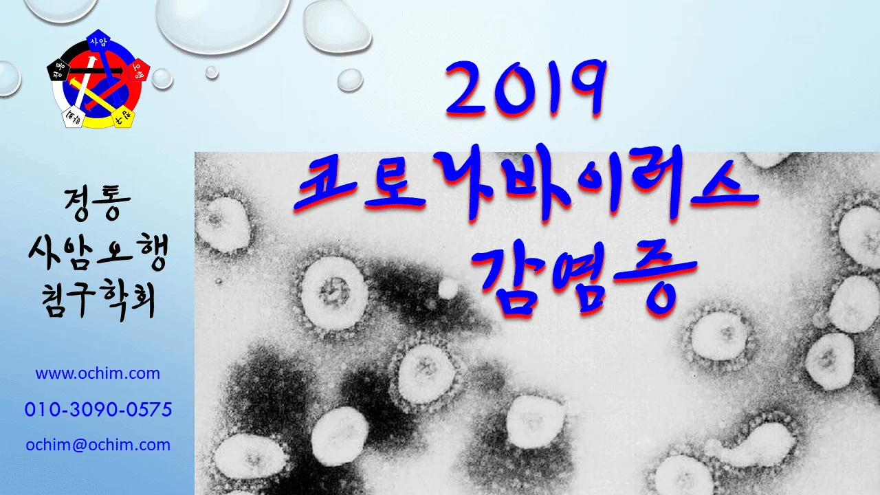 신종 코로나바이러스의 생존 가능한 온습도와 올바른 물 마시는 방법을 명의를 배출하는 정통사암오행침구학회에서 설명한다.